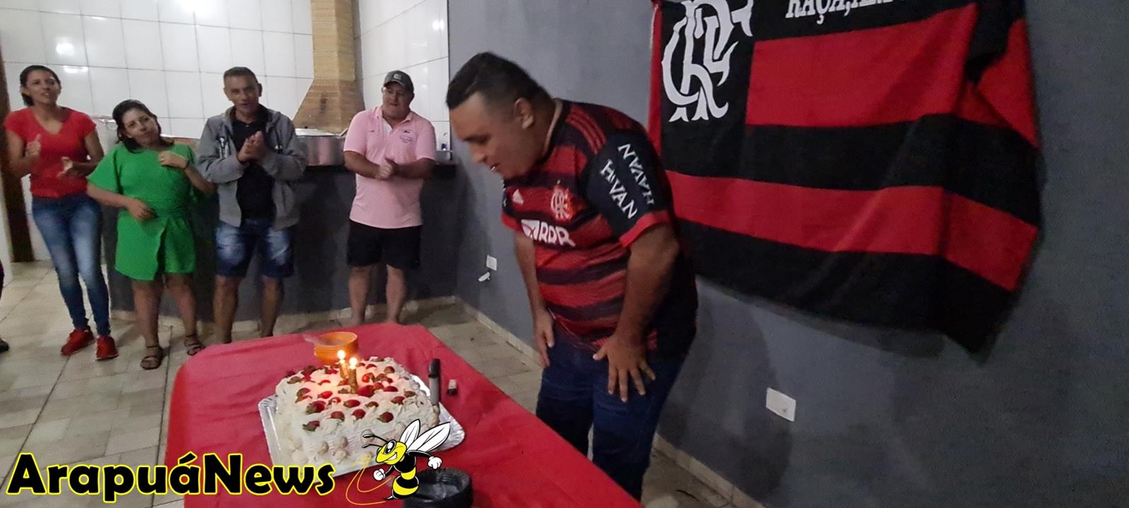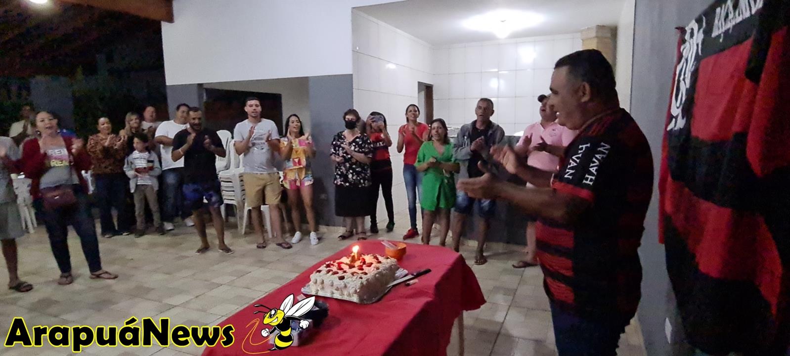 O ex-morador da antiga fazenda Cururuca no Distrito de Arapuá, Rui Carlos de Souza que atualmente mora em Três Lagoas e trabalha como o assessor de vereador na Câmara Municipal de Três Lagoas, esteve reunido com amigos e familiares, na terça-feira (19) de abril, para comemorar seus 44 anos.