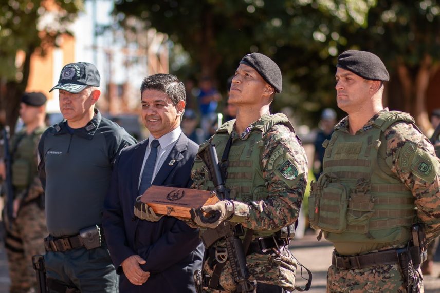 O evento contou com a presença do governador do Estado, Reinaldo Riedel, do comandante-geral da PMMS, Renato dos Anjos Garnes, além de diversas autoridades civis e militares.