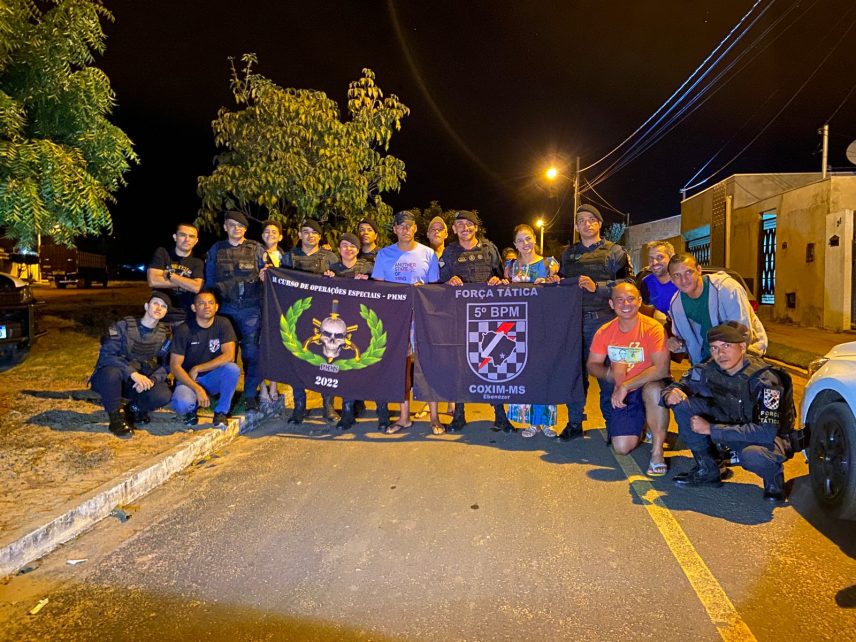 O Cabo Gabriel que é lotado há 9 anos na Força Tática do 5º BPM e estes estiveram presentes em peso para comemorar a conclusão do curso que foi realizado no Quartel do Comando Geral da PMMS. Toda a Equipe também recepcionaram o novo caveira na entrada de Coxim e escoltaram pelas principais ruas e avenidas da cidade com direito a sirene, giroflex e buzinaço.