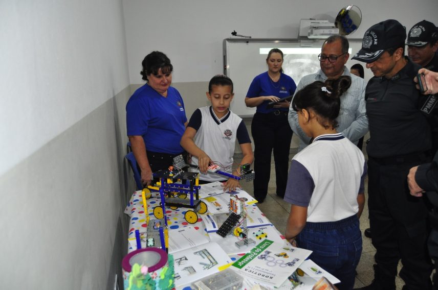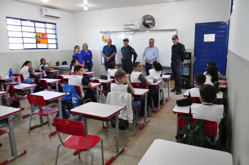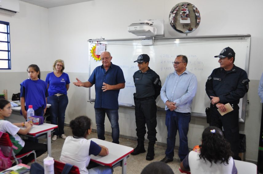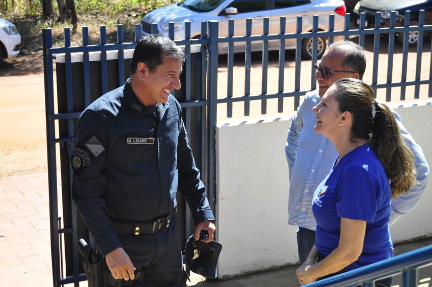 Também acompanharam a visita a Secretária de Assistência Social, Senhora Ana Mirian Cardel de Brito, a Senhora Diretora Katy Elem Ferreira Teixeira, a Senhora Coordenadora Pedagógica Valkiria Cavassola Carneiro, o Tenente PM Joscival Viegas de Pinho e o Monitor Escolar Cabo PM Sérgio Gomes Vedoja.