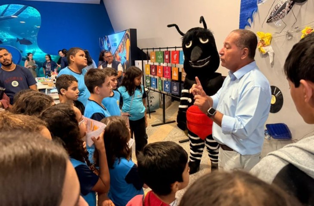 Durante a visita ao maior aquário de água doce do mundo, os alunos puderam aprender, na prática, ações de prevenção e combate à dengue.