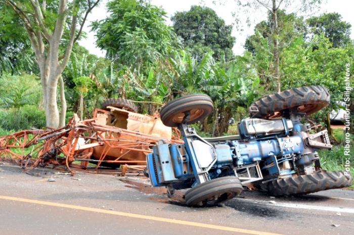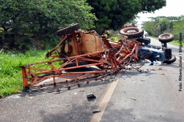 Com a colisão, o condutor do trator foi arremessado às margens da rodovia. O trator e a maquina de veneno chegou a capotar, ficando bastante danificados.