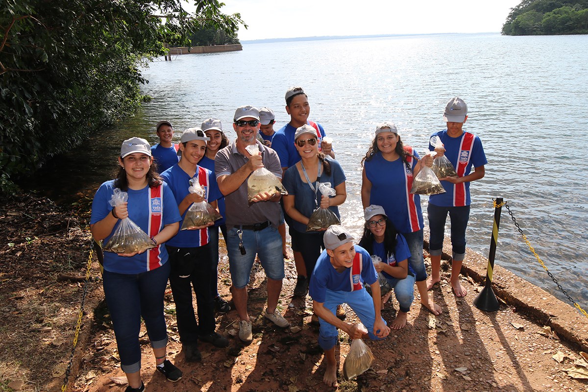 Cerca de 120 mil alevinos foram soltos na última sexta-feira (29) no Condomínio Residencial Encontro das Águas (Vila Operadores) por alunos de 13 a 16 anos da Escola Municipal Professora “Maria Eulália Vieira”. A ação faz parte do Programa Ambiental da CTG Brasil em comemoração ao Dia Mundial da Água.