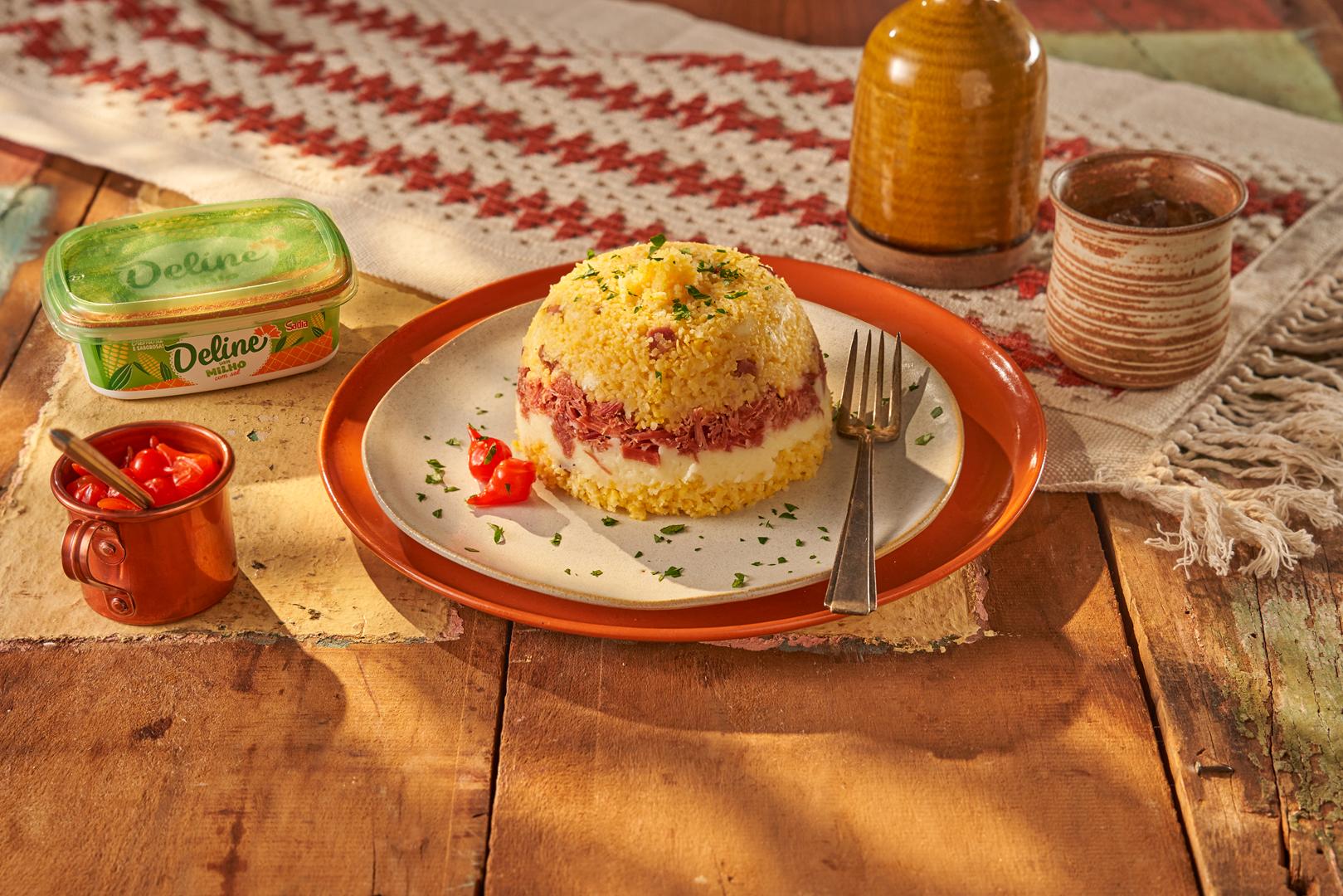 CUSCUZ CREMOSO COM CARNE SECA E BACON