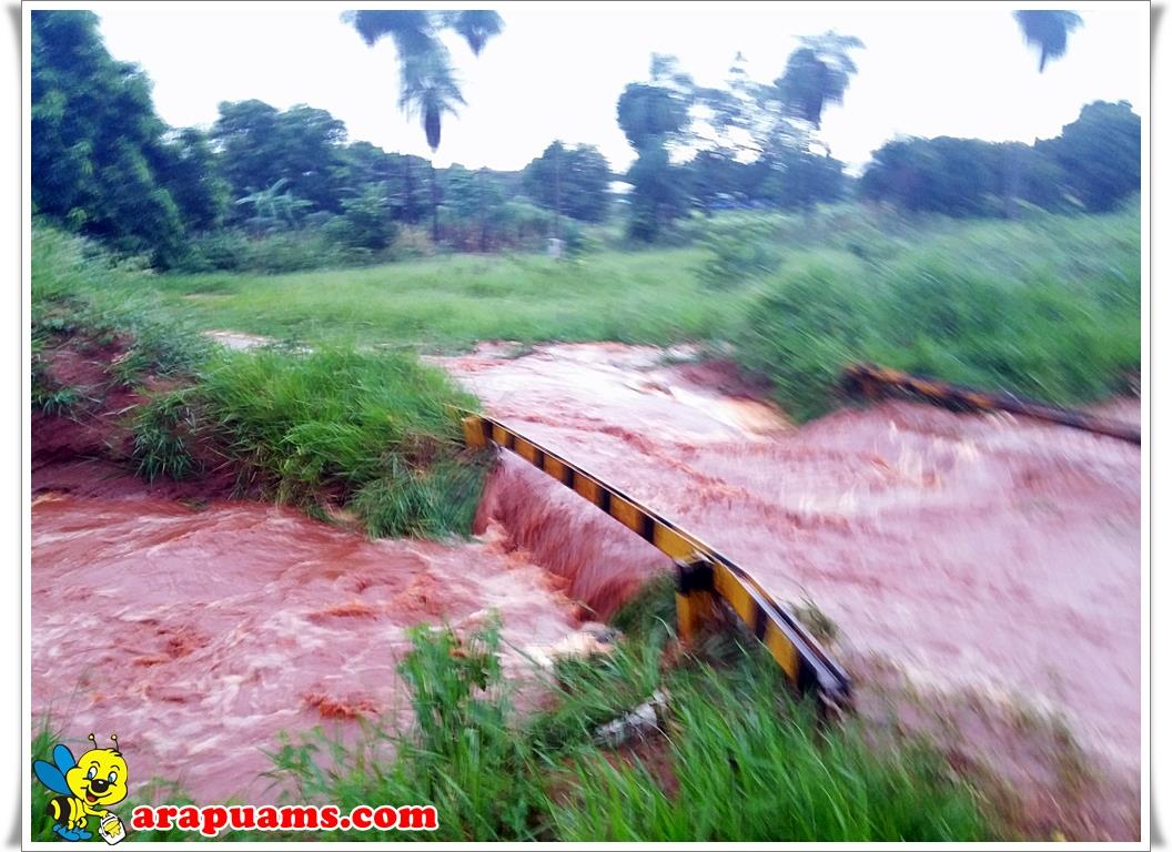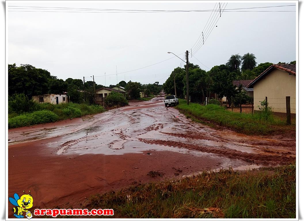 Fazendeiros e sitiantes estão rindo a toa, mas, as estradas rurais é que não gostaram de tanta água, muitas estão sem condições de transitar, como é o caso da estrada do Filipão, onde fica o laticínio do Arapuá. Conversamos com o sub prefeito do Distrito, José Aparecido, que nos disse que a prefeitura está a par do acontecido e  assim que melhorar a condição do tempo, as estradas serão arrumadas.