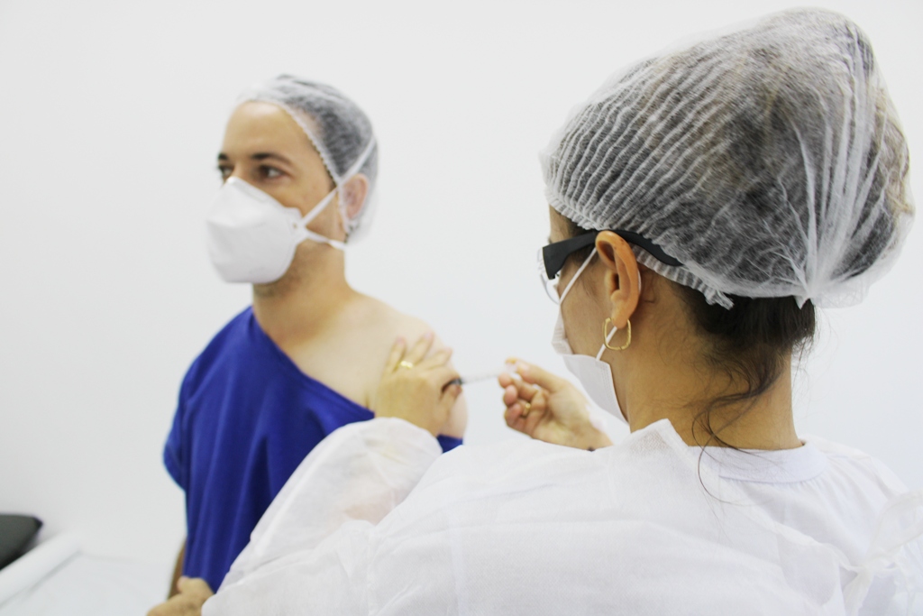 Participaram também do ato da primeira vacinação a Secretária Municipal de Saúde, Adeliza Abrami, o presidente do Conselho Municipal de Saúde, o agente comunitário Gredson Moura e a diretora do Hospital Dr. Júlio César Paulino Maia, Marcilene Rodrigues.