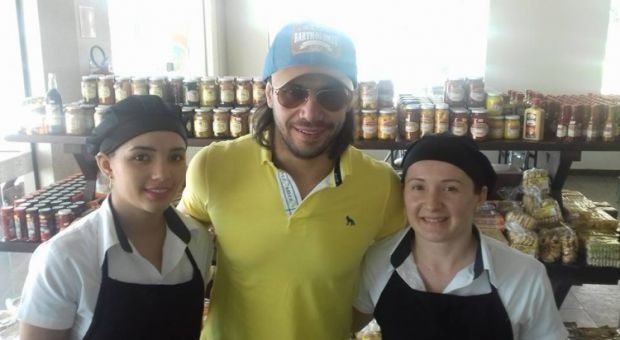 O cantor se reuniu com a equipe na churrascaria Real, localizada na rodovia BR-262.E, é claro, que posou para foto ao lado das funcionárias do local.