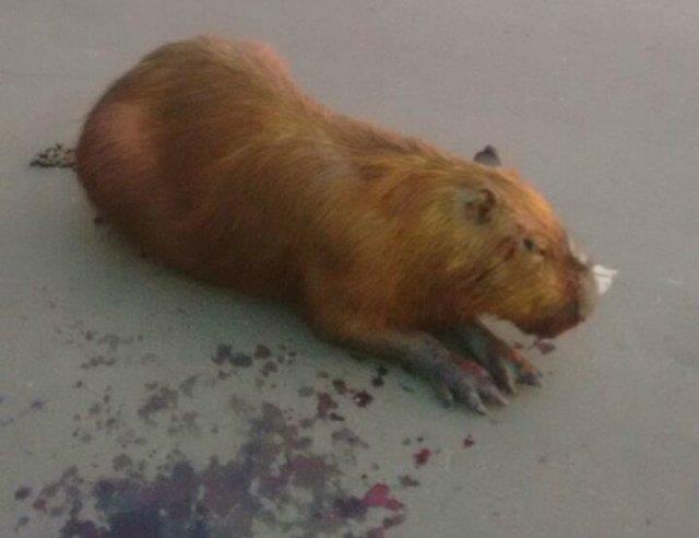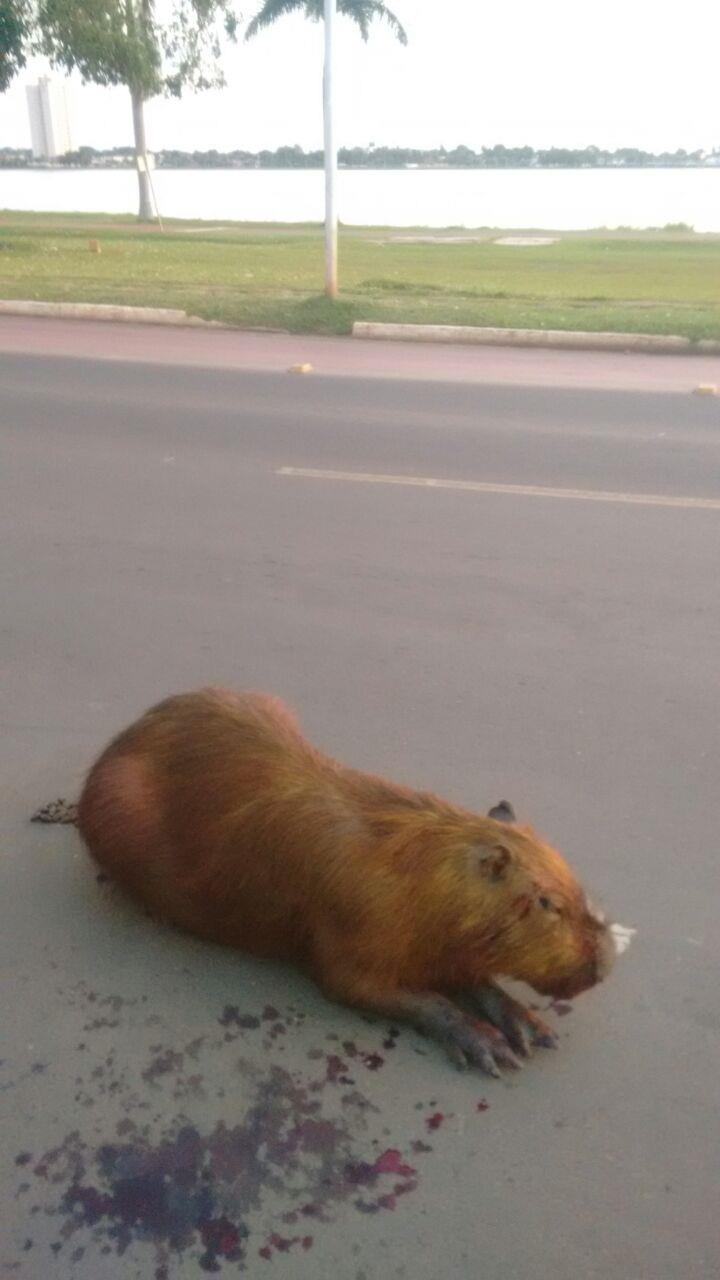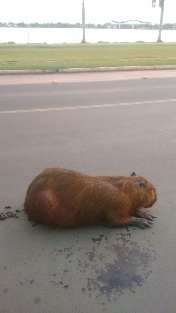 Capivara é atropelada próximo a lagoa maior em Três Lagoas
