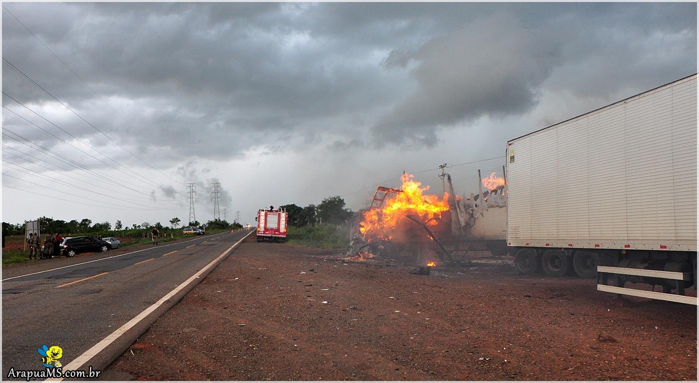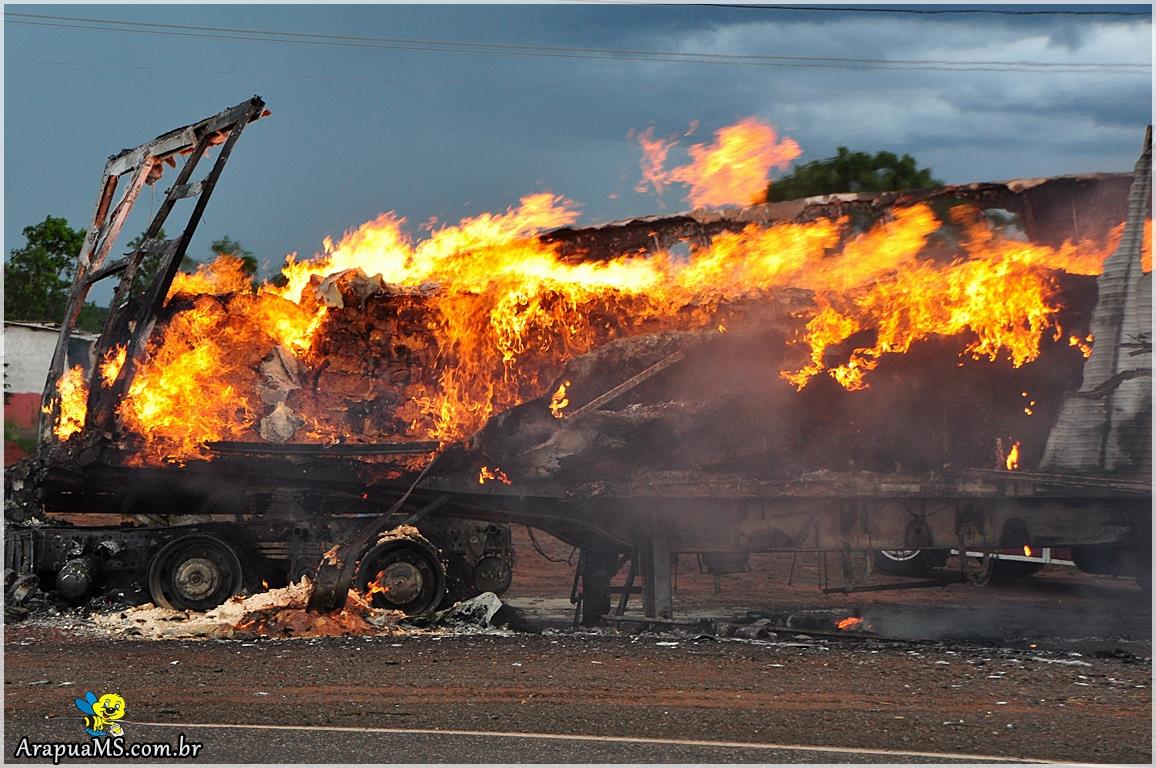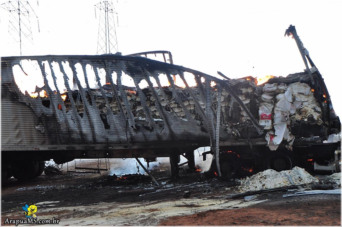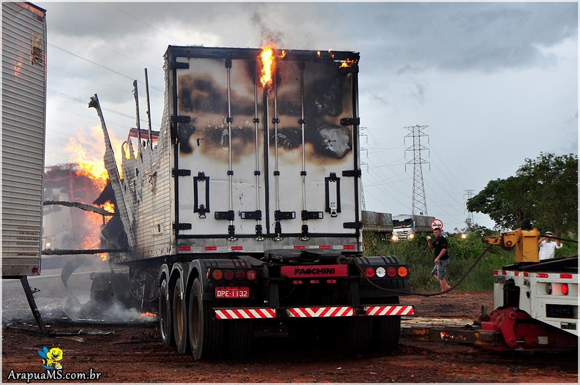 Conforme o motorista de 40 anos, o caminhão bi-trem teve um problema mecânico no Km 34, um mecânico foi ao local e após conserto, seguiu viagem, logo após alguns quilômetros, aconteceu um estouro na cabine, imediatamente o caminhão foi estacionado ao lado da rodovia, só deu tempo do condutor sair do veiculo, que começou a pegar fogo, nos dois tanques com cerca de 500 litros de óleo, altas labaredas assustaram os condutores da rodovia, a pista foi imediatamente interditada pela PRF.