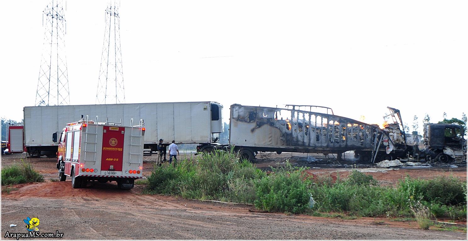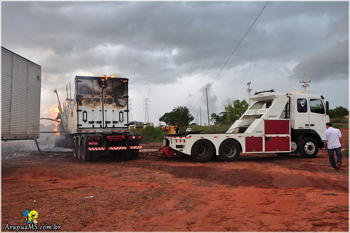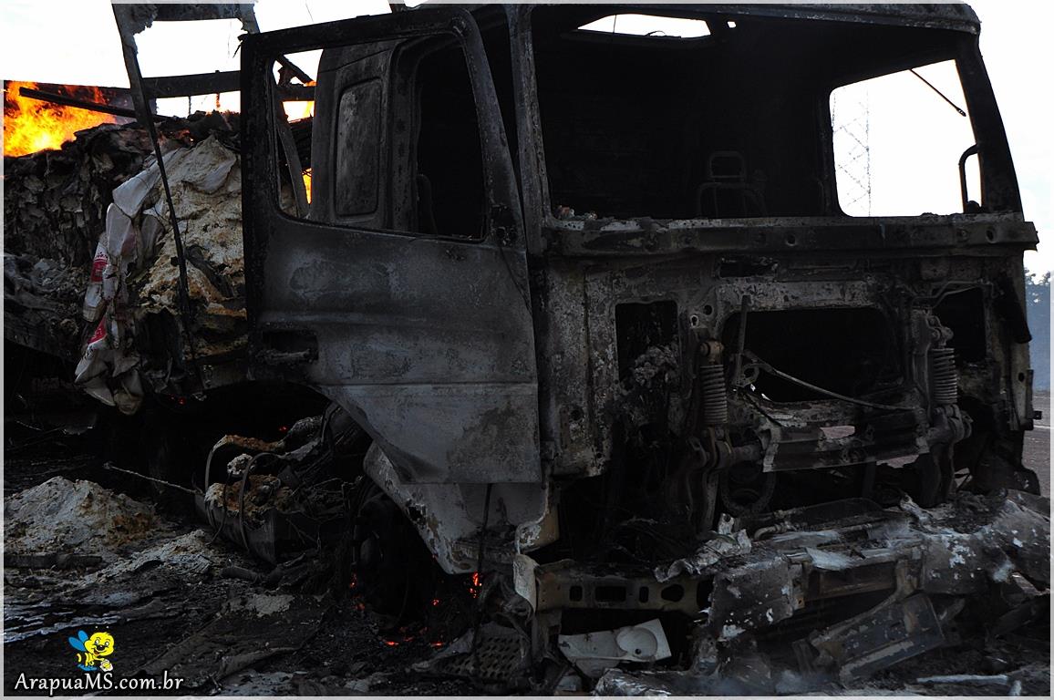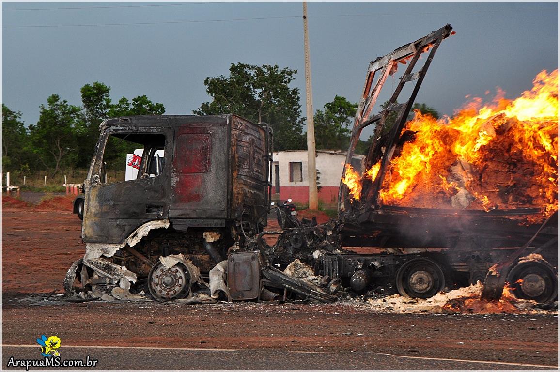 Conforme o motorista de 40 anos, o caminhão bi-trem teve um problema mecânico no Km 34, um mecânico foi ao local e após conserto, seguiu viagem, logo após alguns quilômetros, aconteceu um estouro na cabine, imediatamente o caminhão foi estacionado ao lado da rodovia, só deu tempo do condutor sair do veiculo, que começou a pegar fogo, nos dois tanques com cerca de 500 litros de óleo, altas labaredas assustaram os condutores da rodovia, a pista foi imediatamente interditada pela PRF.