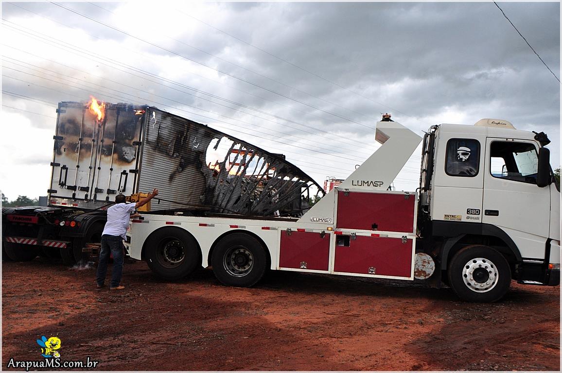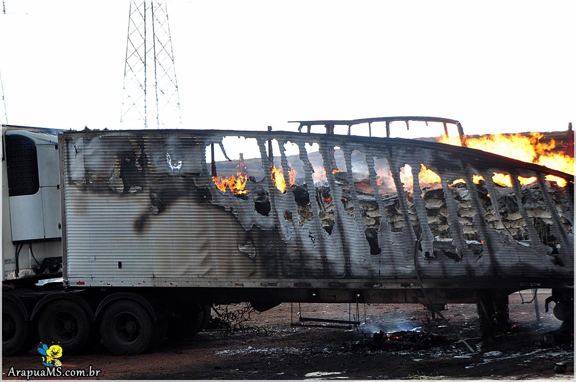 Carreta da Sadia pega fogo no Km 40 da BR 262, próximo ao Distrito de Arapuá, VEJA VÍDEO