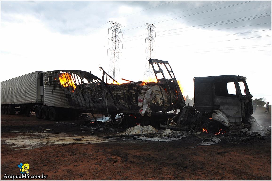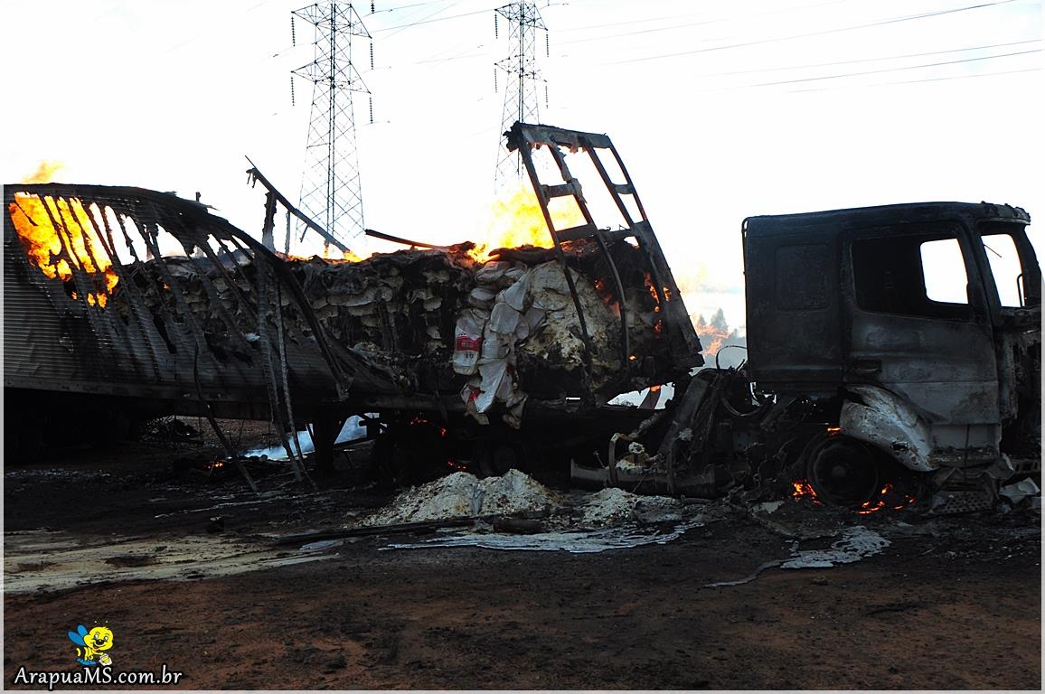 O caminhão bi-trem teria a cidade Lucas do Rio Verde-MT como destino, onde entregaria a carga na fábrica da sadia, transportando dois vagões com 30 toneladas de farinha de trigo em pó, o motorista é morador da cidade de Campo Grande, nada aconteceu com o rapaz, somente um grande susto, e danos materiais a empresa.