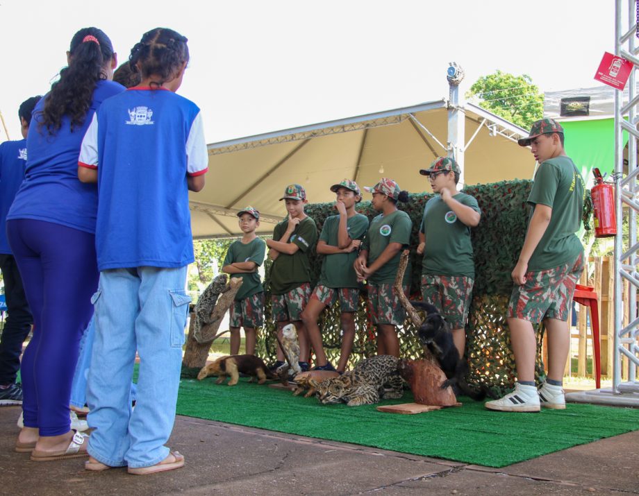 Durante a visita ao recinto do evento, que segue até o dia 2 de maio, os alunos puderam conhecer uma exposição de animais taxidermizados pela PMA, despertando curiosidade e aprendizado sobre a fauna regional. Os próprios integrantes do Florestinha conduziram parte da atividade, explicando aos visitantes detalhes sobre cada espécie exposta, como características físicas, hábitos alimentares e comportamento no meio ambiente.