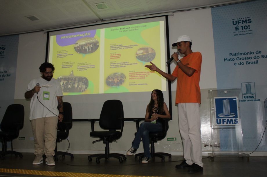 Durante a programação, os participantes foram organizados em grupos de trabalho divididos em cinco eixos temáticos: educação, profissionalização, trabalho e renda; cultura, esporte e lazer; participação social, diversidade e igualdade; sustentabilidade, meio ambiente, território e mobilidade; e saúde mental. A dinâmica possibilitou a troca de experiências e a construção de sugestões concretas a partir da realidade vivida pelas juventudes sul-mato-grossenses.