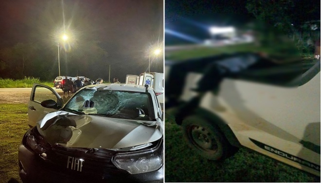 Imagens obtidas pelo Portal Água Clara mostram a frente do veículo bastante danificada, o que indica que a colisão foi frontal e provavelmente o impacto foi tão grande que a vítima foi parar na carroceria da Strada. Quando a polícia chegou ao local, ele já estava sem vida.