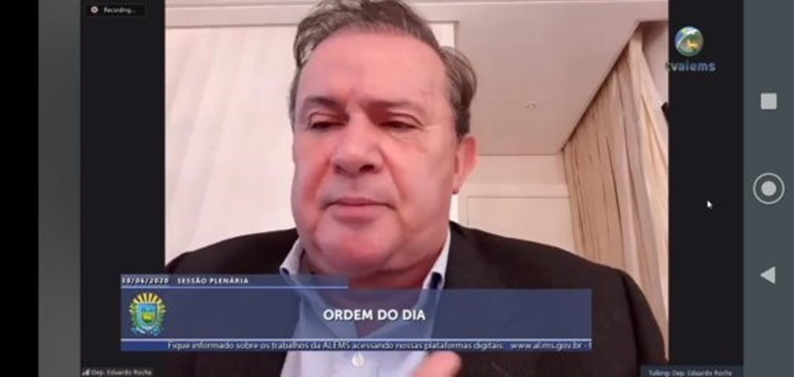 O deputado estadual Eduardo Rocha, primeiro vice-presidente da ALEMS (Assembleia Legislativa de Mato Grosso do Sul), apresentou uma indicação na sessão remota desta terça-feira (30), solicitando que a Sanesul (Empresa de Saneamento de Mato Grosso do Sul) prorrogue por mais 90 dias a suspensão no corte do fornecimento, por conta da pandemia do coronavírus.