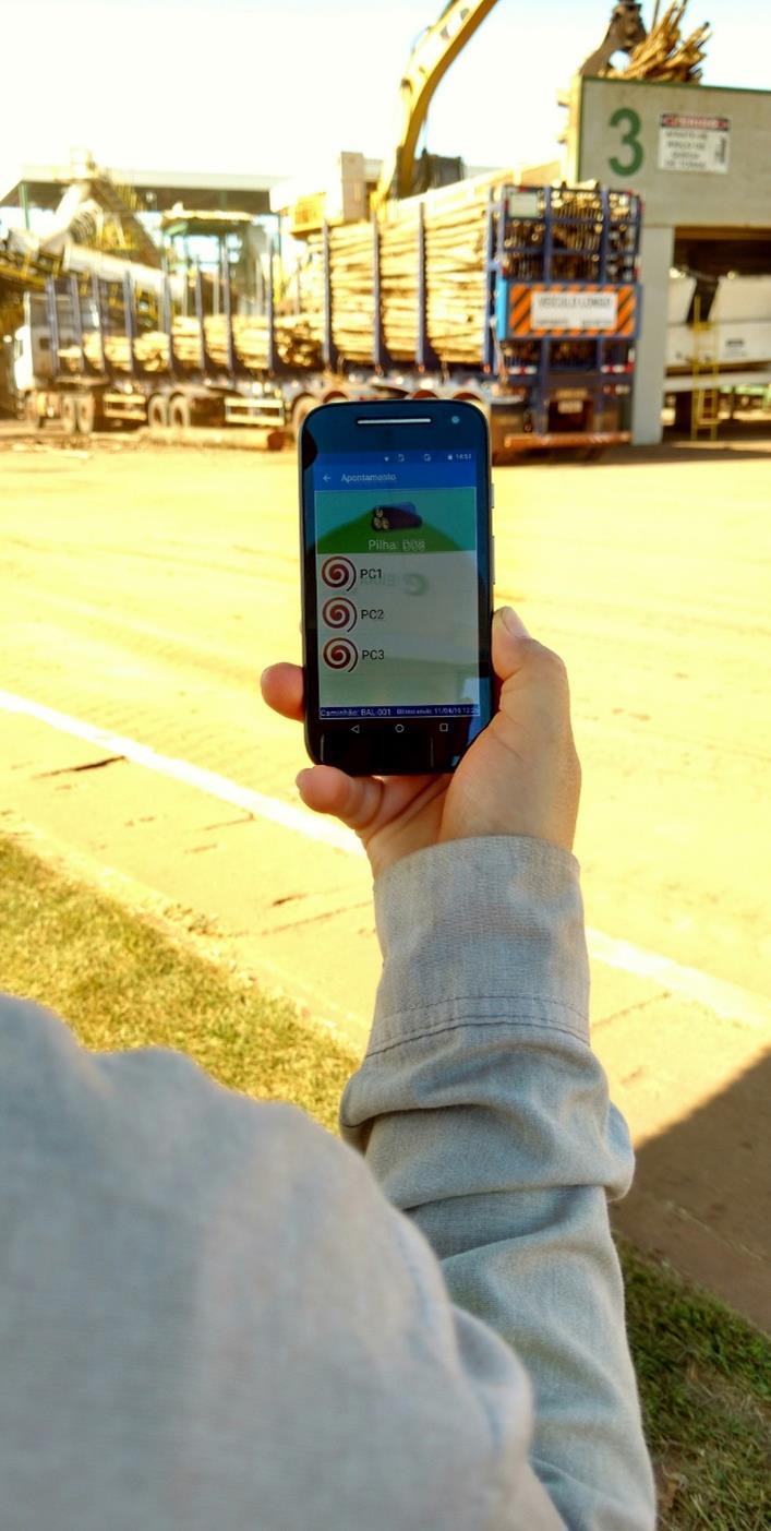 Com a implantação do aplicativo de mobilidade de baldeio da INFLOR, a Eldorado Brasil Celulose terá mais agilidade em seu processo de entrega de madeira, já que o caminhoneiro passa a informar diretamente no celular em qual mesa a madeira será descarregada para ser picada em cavacos.