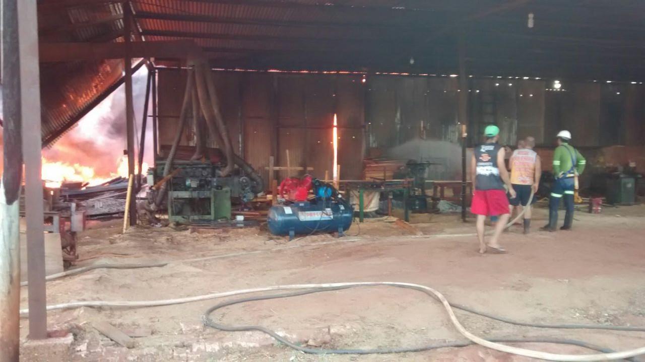Em Água Clara, Empresas e Defesa Civil combate incêndio em fábrica