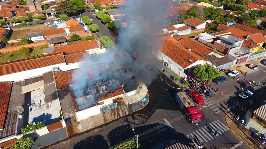Um incêndio suspeito na manhã desta quinta-feira, 13, destruiu um imóvel que abrigava uma casa e uma sorveteria, no cruzamento das ruas Floriano Peixoto e Santos Dumont, ao lado da Escola “Augusto Mariani”, no jardim Alvorada.
