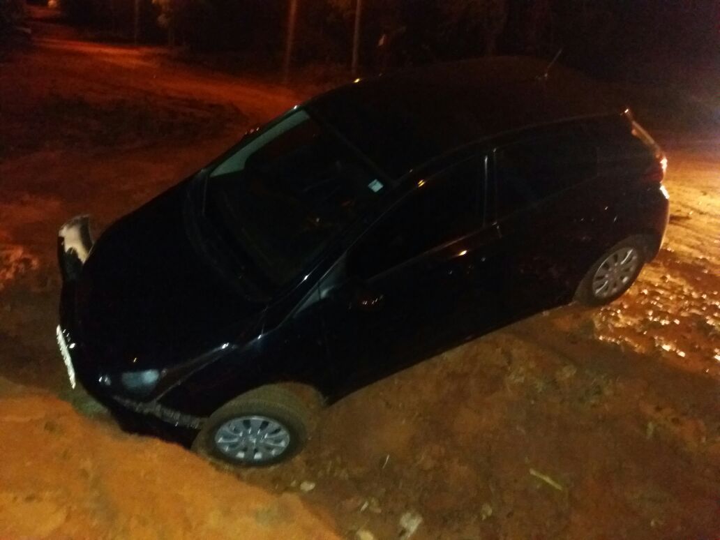 O morador Antonio Silva de 30 anos, estava indo para sua residência na rua Eugênia Trannin, e ao fazer uma conversão na rua Fausto Tavares cai com as rodas dianteiras de seu carro.
