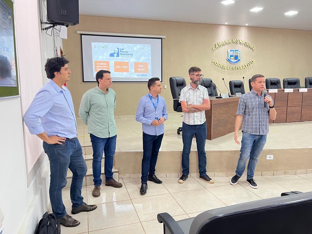 Representantes do Sesi e da Secretaria de Estado de Turismo, Esporte, Cultura e Cidadania (Setescc) estiveram em Bonito nesta terça-feira (21/03) para apresentar a gestores públicos as oportunidades de captação de recursos públicos para a cultura por meio da Lei Paulo Gustavo. A apresentação foi realizada na sede da Câmara Municipal de Bonito.