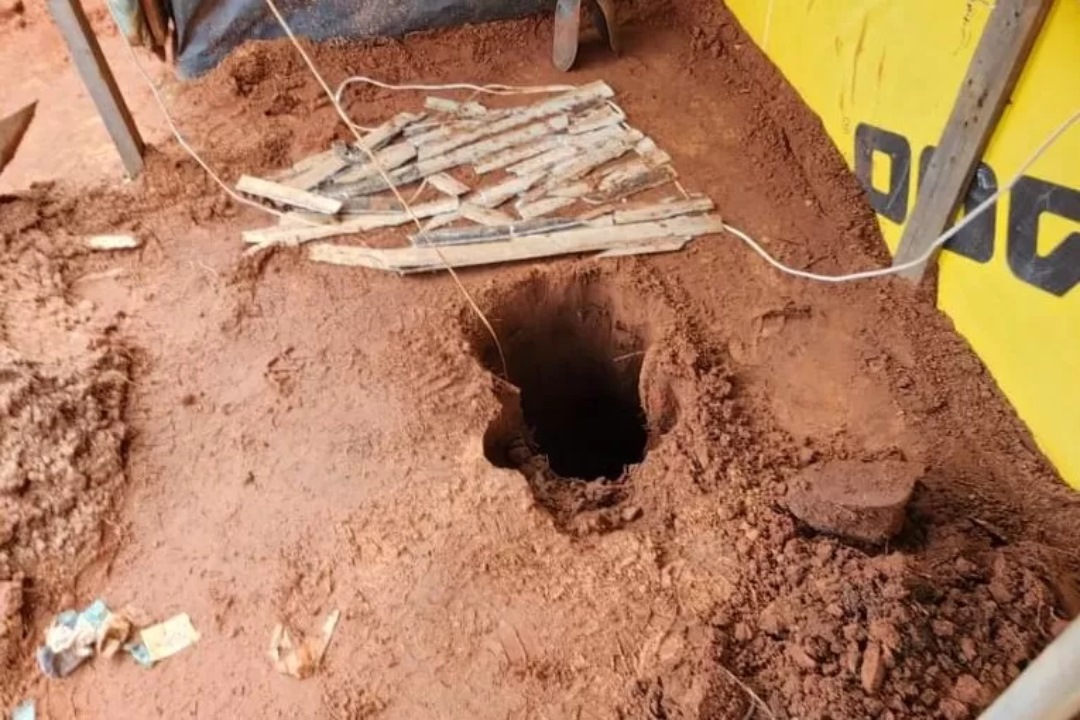 A situação chamou a atenção do homem, pois o buraco parece um túnel que poderia ser utilizado na fuga de internos de complexo prisional a cerca de 500 metros do local.