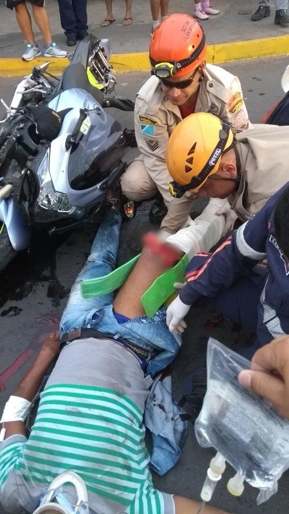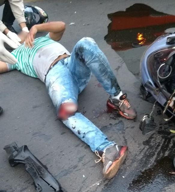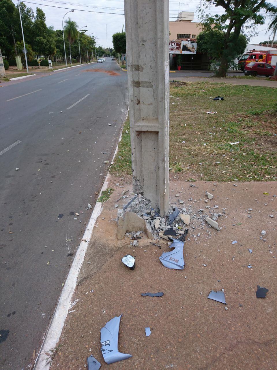 Em Três Lagoas, após bater em poste motociclista sofre grave fratura no joelho