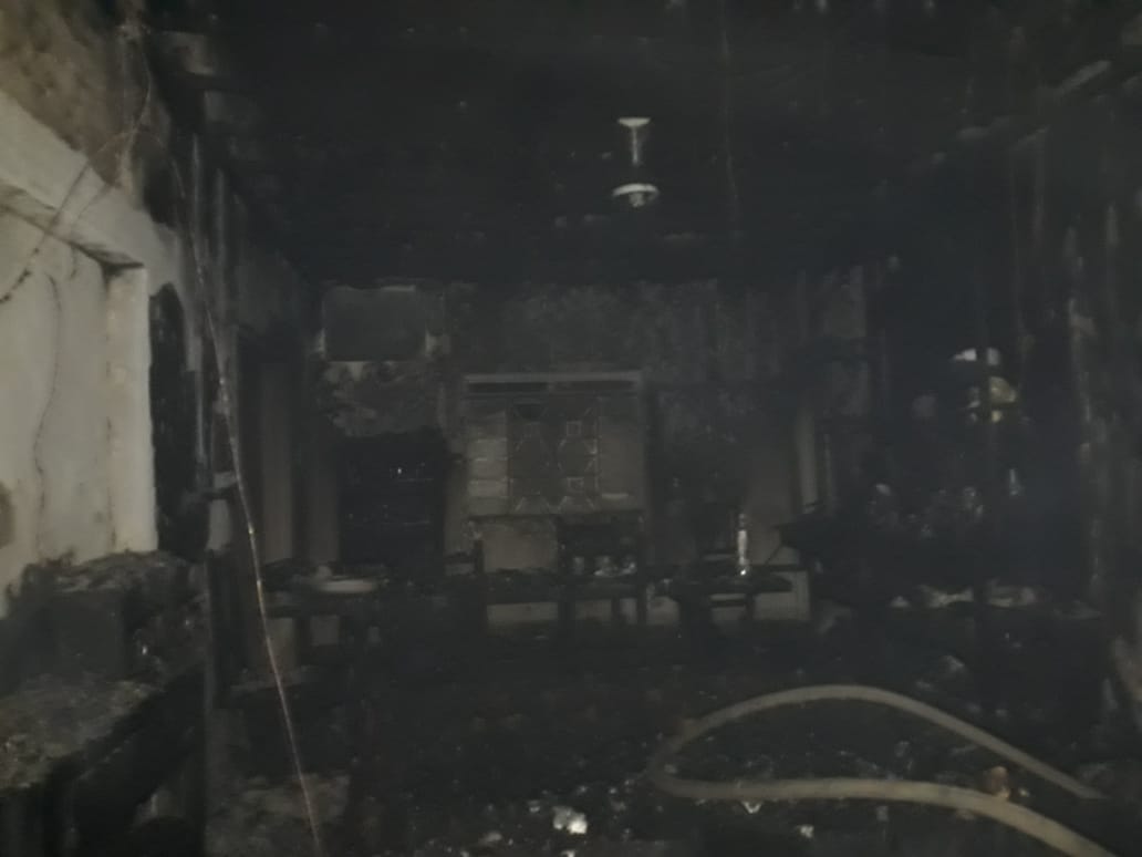 O fogo danificou várias partes da residência, além de provocar muita fumaça e fuligem no interior da casa.