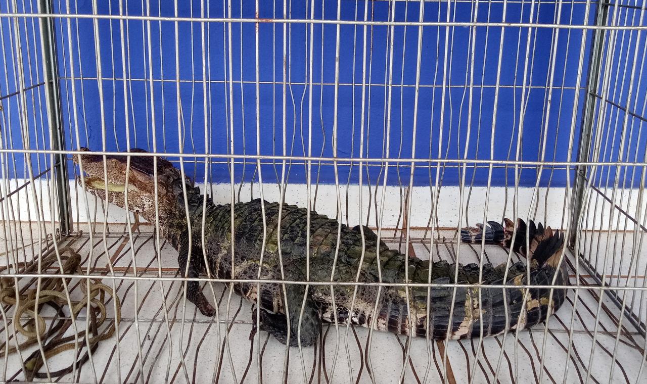 O jacaré, que media aproximadamente 1,10 metro, foi colocado em uma caixa de contenção e, como estava em boas condições de saúde e sem quaisquer ferimentos, foi solto em uma reserva distante do perímetro urbano.