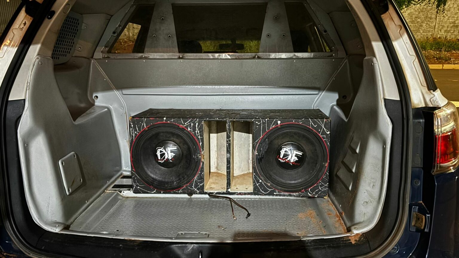 Próximo ao automóvel estavam o responsável pelo veículo e outras pessoas. Diante da infração confirmada no local, os policiais realizaram a apreensão do aparelho de som utilizado na perturbação.