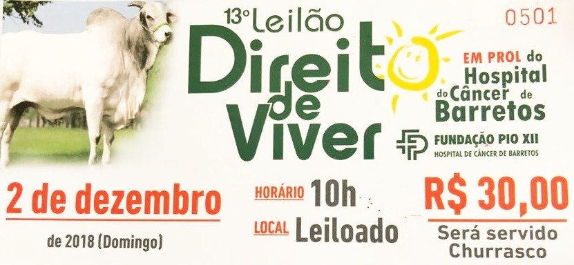 Para participar do leilão, basta comprar o ingresso no valor de R$ 30,00 através do telefone (67) 3521-2347 ou no Escritório CS, localizado na Rua Bruno Garcia, 73. Será oferecido um churrasco no dia 2 de dezembro a partir das 10h no Espaço Leiloado, com bebidas a parte, e em seguida, acontece o leilão.