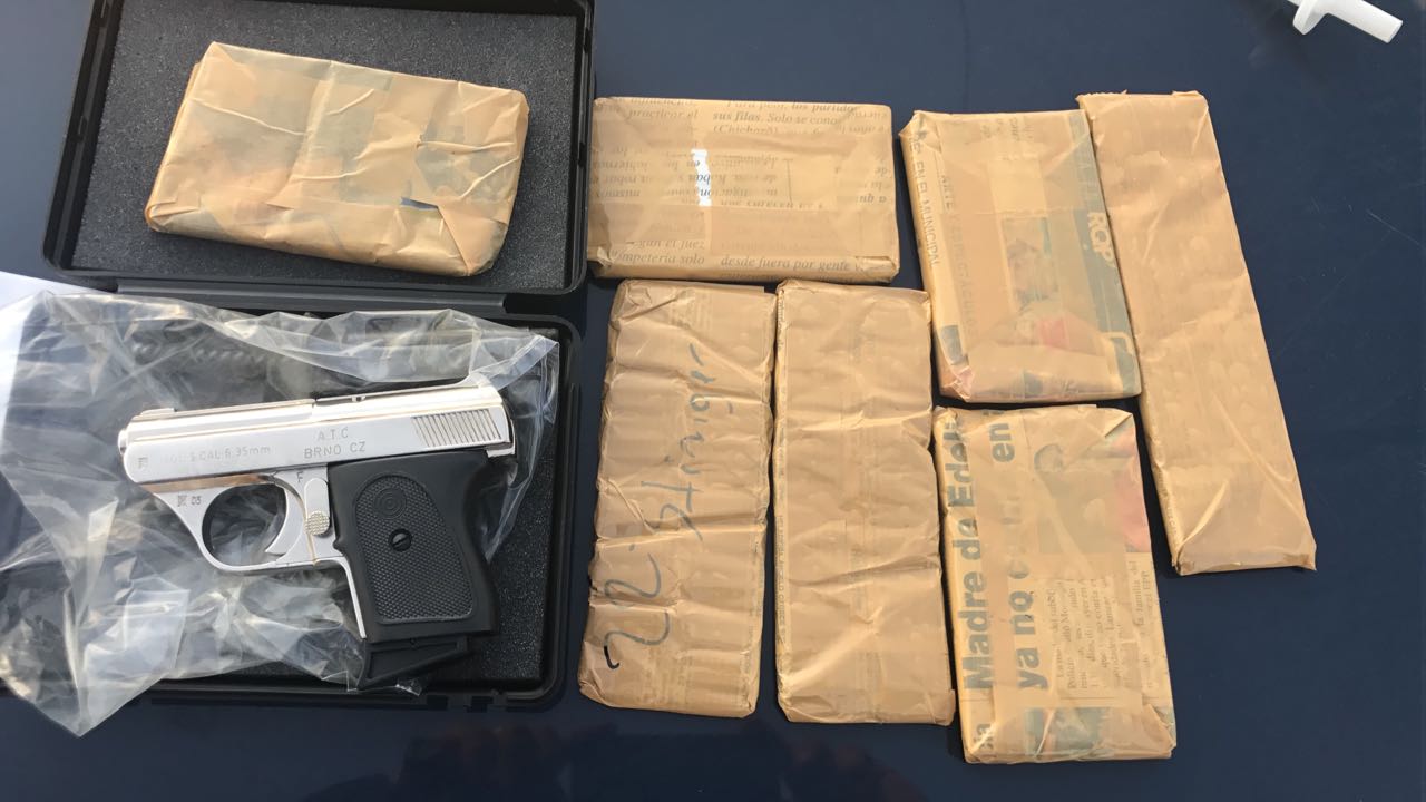 Os ocupantes declararam que estavam vindo do Paraguai e foi identificada grande quantidade de produtos de origem estrangeira desacompanhados de documentos fiscais comprobatórios da origem. Após busca minuciosa veicular, foi localizada uma pistola calibre 6.35 marca CZ A.T.C BRNO CZ mod.5.cal.6.35mm com 2 carregadores e estojo, bem como, 100 munições calibre 32 e 50 munições calibre 6.35.