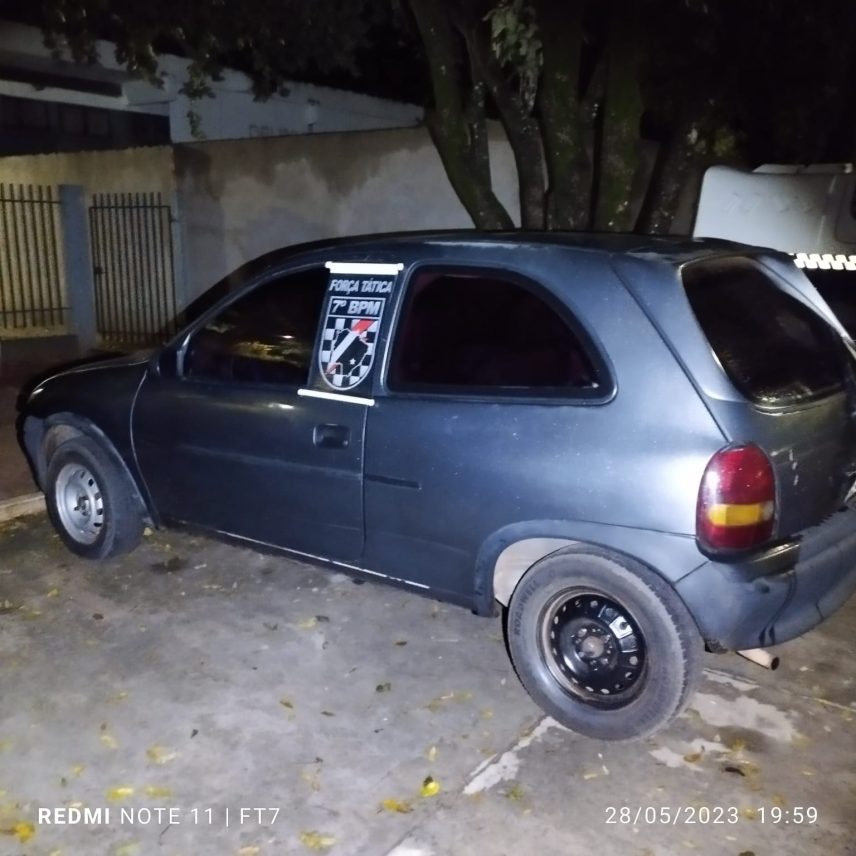 No domingo, dia 28/05, a equipe de FORÇA TÁTICA, foi informada que nas imediações da vila Previsul estaria trafegando um veículo que seria produto de furto na cidade de Campo Grande no mês de dezembro de 2022, encontrou o referido veículo, cito um CORSA WIND de cor CINZA. Feito contato com o condutor, este se identificou como sendo o dono do veículo, alegou ter adquirido o veículo de um rapaz na cidade de Anastácio. Os policiais fizeram as devidas verificações e foi constatado que as placas de identificação do referido veículo não condiziam com o chassi do mesmo e o número verdadeiro da placa estaria com registro de furto.