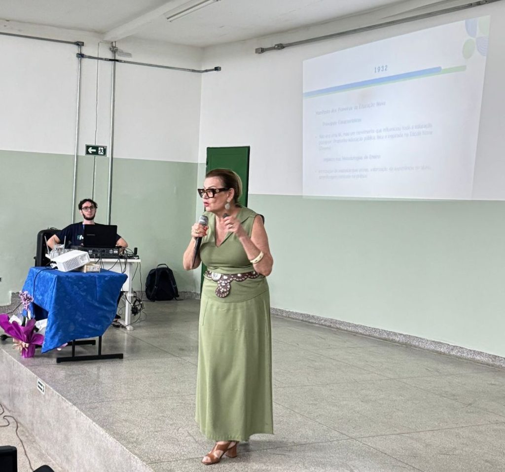 O evento foi aberto pela professora Maria Cecília Amendola Motta, cuja fala ressaltou a importância da educação como força transformadora e reafirmou o papel essencial do professor, mesmo diante das inovações tecnológicas. Sua mensagem serviu como incentivo para os participantes, motivando-os a integrar tecnologia e ensino com propósito renovado.