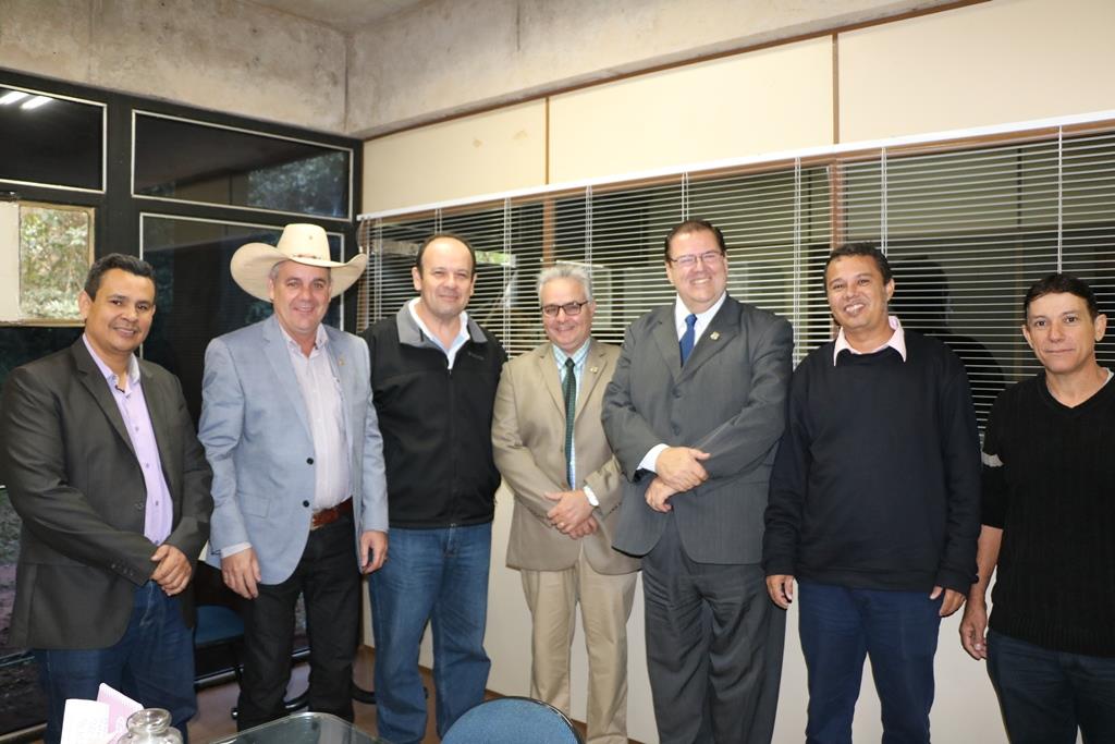O deputado Angelo Guerreiro; o Diretor da Colônia Penal de Três Lagoas, José Antônio Garcia Sales e o Chefe de Disciplina, Wilson Medina; o Diretor Presidente da Agência Estadual de Administração do Sistema Penitenciário de Mato Grosso do Sul, Ailton Stropa Garcia; o Diretor de Assistência Penitenciária da Agepen, Gilson Martins e o Chefe de gabinete da Agepen, Dumas Torraca Michels, conversaram sobre o assunto com o Superintendente de Infraestrutura e Apoio Operacional, Engenheiro Paulo Henrique Malacrida.