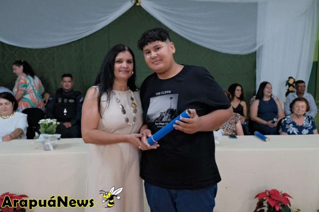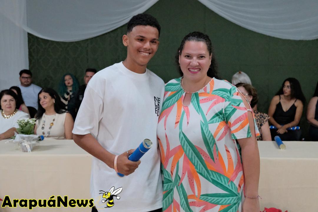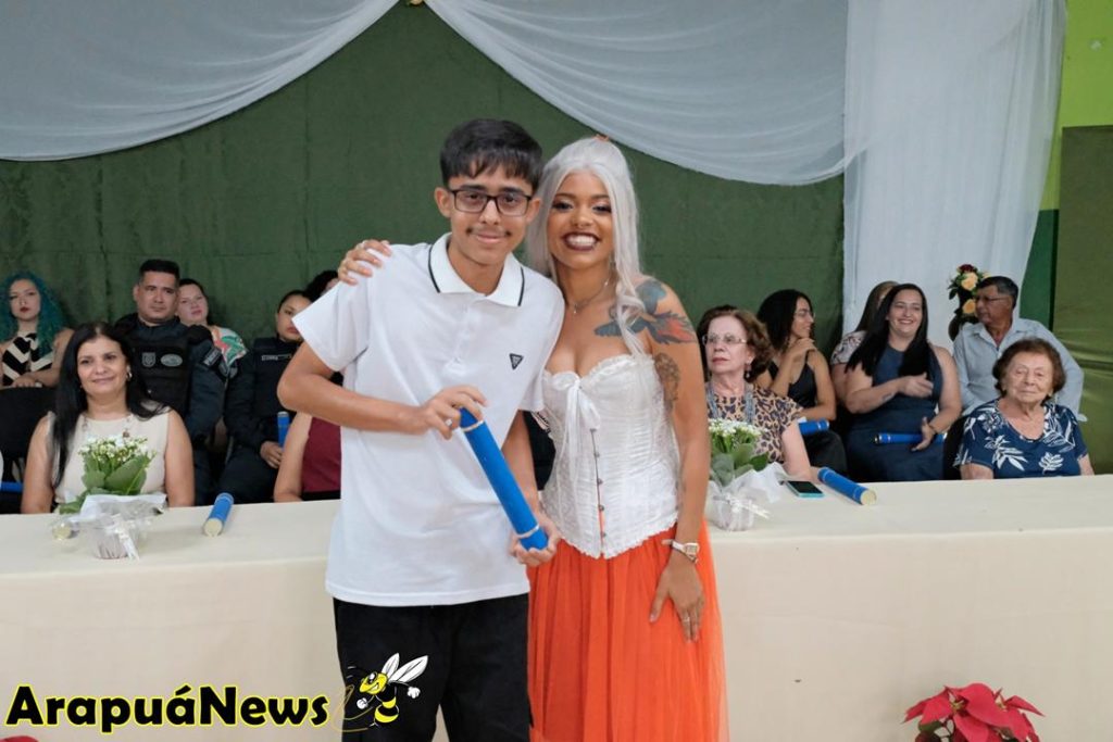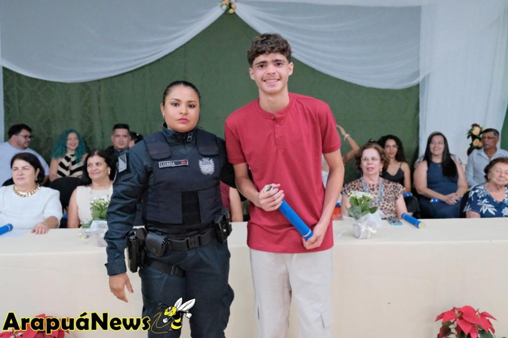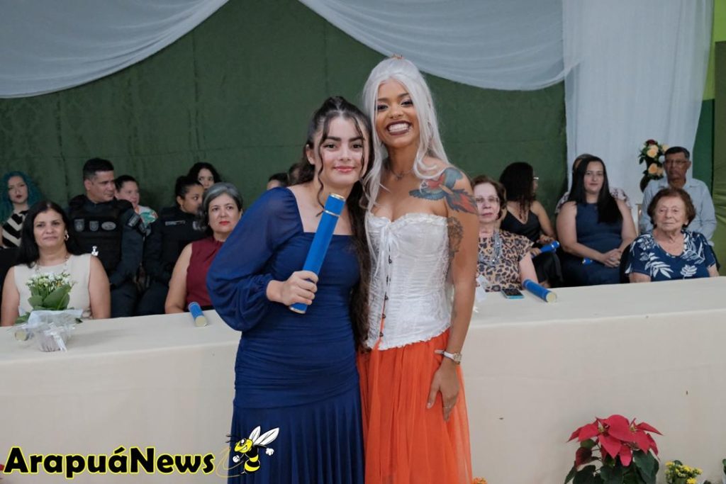No dia 13 de dezembro aconteceu a Formatura da Escola Estadual Afonso Francisco Xavier Trannin do Distrito de Arapuá – MS, com apresentação da Cerimonialista Professora Elaine Martins da Silva, é com muita honra, alegria e satisfação que nos reunimos nesta noite — núcleo gestor, professores, funcionários administrativos, famílias, amigos, autoridades e demais convidados — para a cerimônia solene de conclusão do Ensino Médio e do Ensino Fundamental da Escola Estadual Afonso Francisco Xavier Trannin.