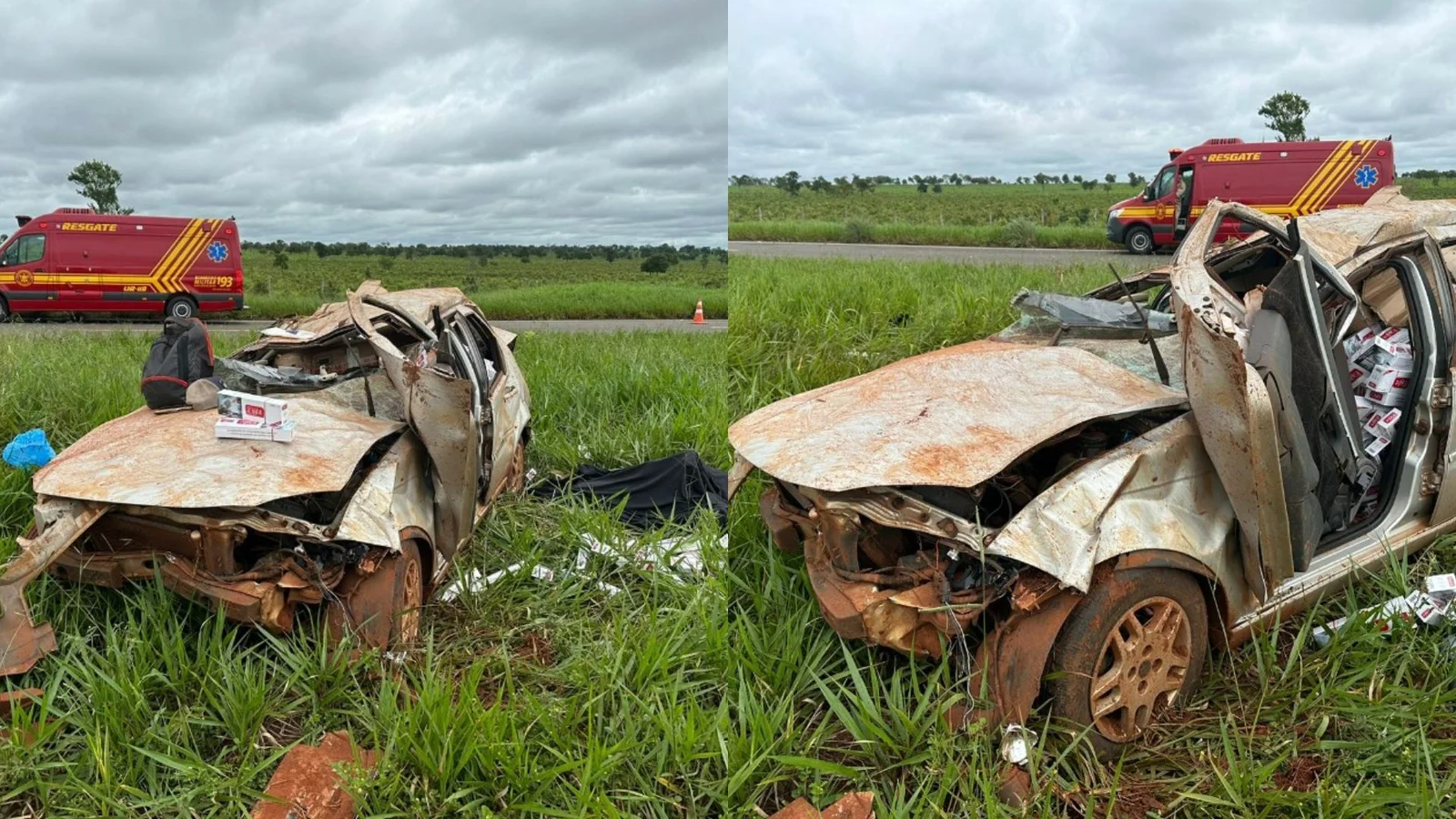 O carro ficou destruído. A carga de cigarros contrabandeados ficou espalhada pela vegetação próximo à Rodovia Manoel Lino de Rezende e o corpo do motorista foi arremessado para fora do veículo.