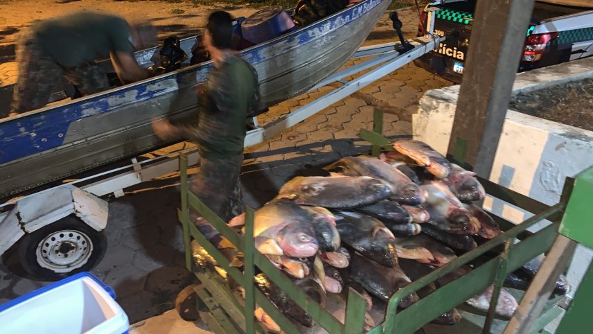 O infrator havia capturado diversos exemplares de peixes das espécies pintado, cachara, pacu, curimbatá e piranha, pesando 279 kg (quantidade acima da permitida pelas normas – crime também). Além do pescado, com o pescador foram apreendidos: um barco de alumínio e um motor de popa de popa utilizados na pescaria ilegal.