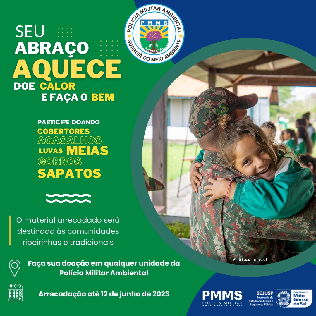 Como a Polícia Militar participa da campanha e tem presença em todos os municípios do Estado, o Batalhão de Polícia Militar Ambiental, que possui 27 Subunidades em 20 municípios, por ser uma Unidade da PMMS, está junto. Devido a convivência diária com populações ribeirinhas e outras populações tradicionais, tanto pantaneiras, como também da bacia do rio Paraná e sempre se solidarizar com suas condições sociais difíceis, a Polícia Militar Ambiental conseguiu autorização, para que sua arrecadação de agasalhos seja distribuída a essa população.