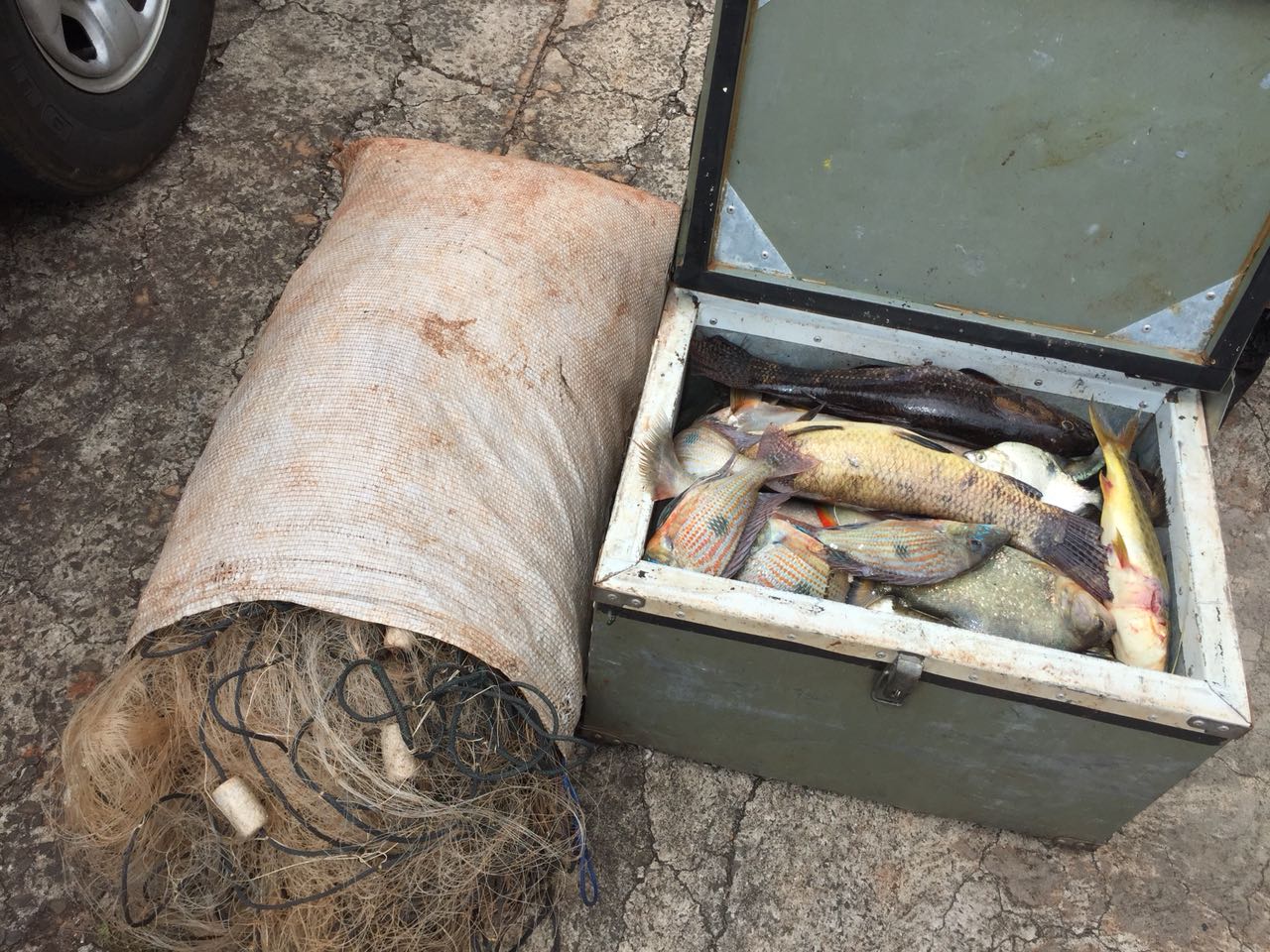 PMA prende dois pescadores pescando com redes e apreendem 800 metros de redes e 17 kg de pescado