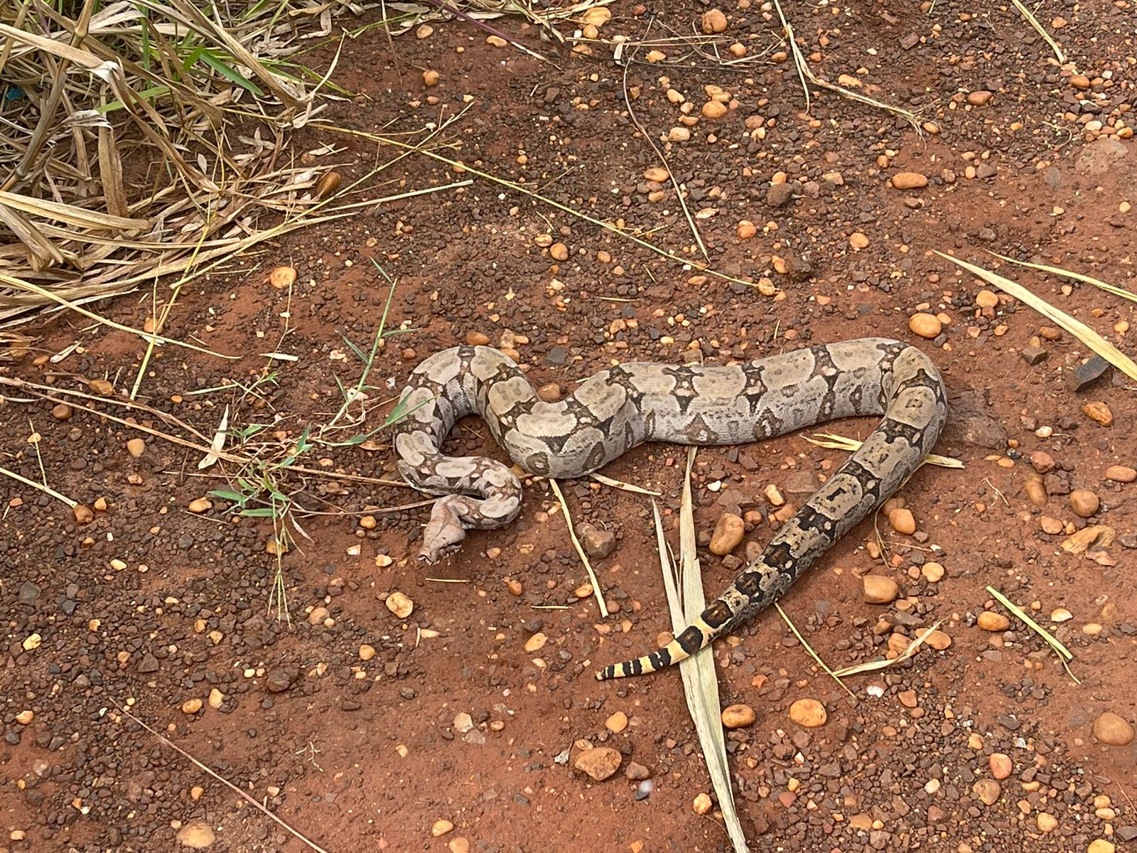 O diretor (53) de uma Escola Municipal Infantil, localizada no bairro Parque do Lago, telefonou no dia (17) para a PMA de Dourados, informando sobre a presença de uma serpente de grande porte que estava na calçada, na parte externa da escola. Os Policiais Militares Ambientais foram ao local e verificaram tratar-se de uma serpente da espécie Boa constrictor (jiboia) com quase dois metros de comprimento.