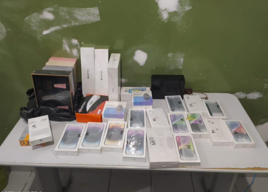A guarnição de serviço abordou uma van que realizava o itinerário Campo Grande/Costa Rica, e durante revista localizaram no porta malas do veículo diversos produtos oriundos do Paraguai. Entre eles, Iphones, relógios, fone de ouvido sem fio, shampoo, creme capilar, perfumes, máquinas de cartão de crédito, entre outros.