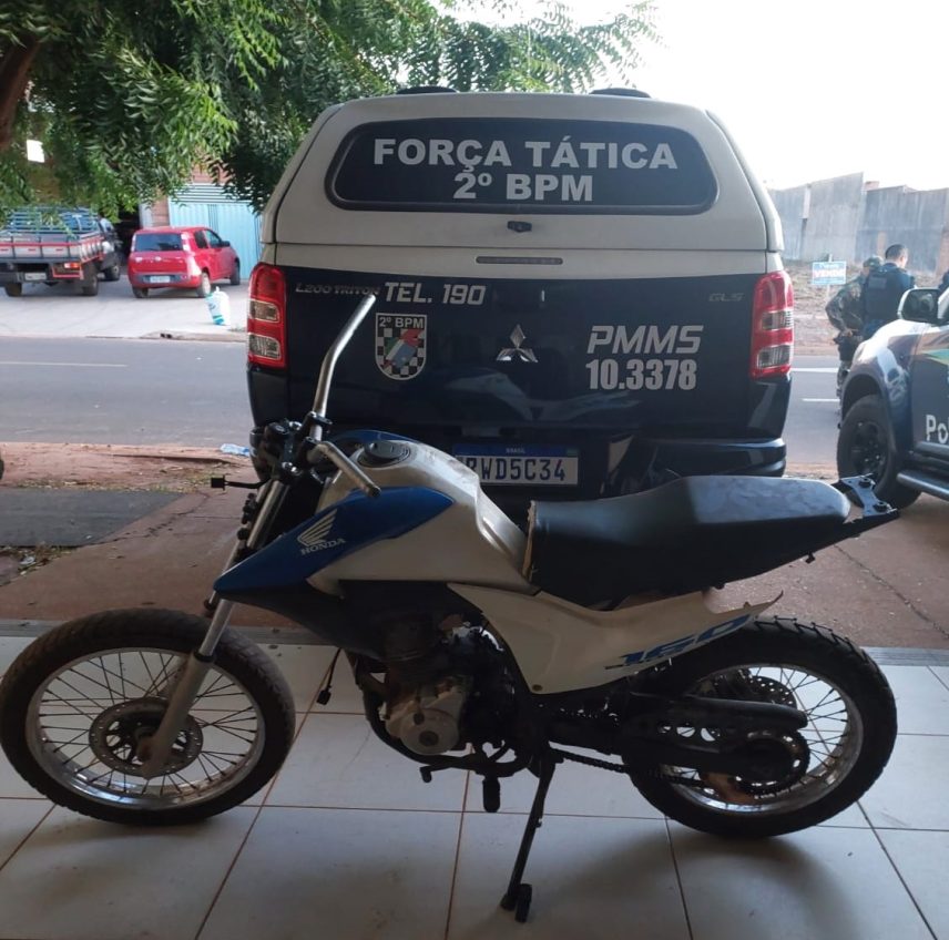 Três Lagoas – MS, no dia 24 de maio, os policiais militares do 2º Batalhão de Polícia Militar recuperaram uma motocicleta roubada no estado de São Paulo.