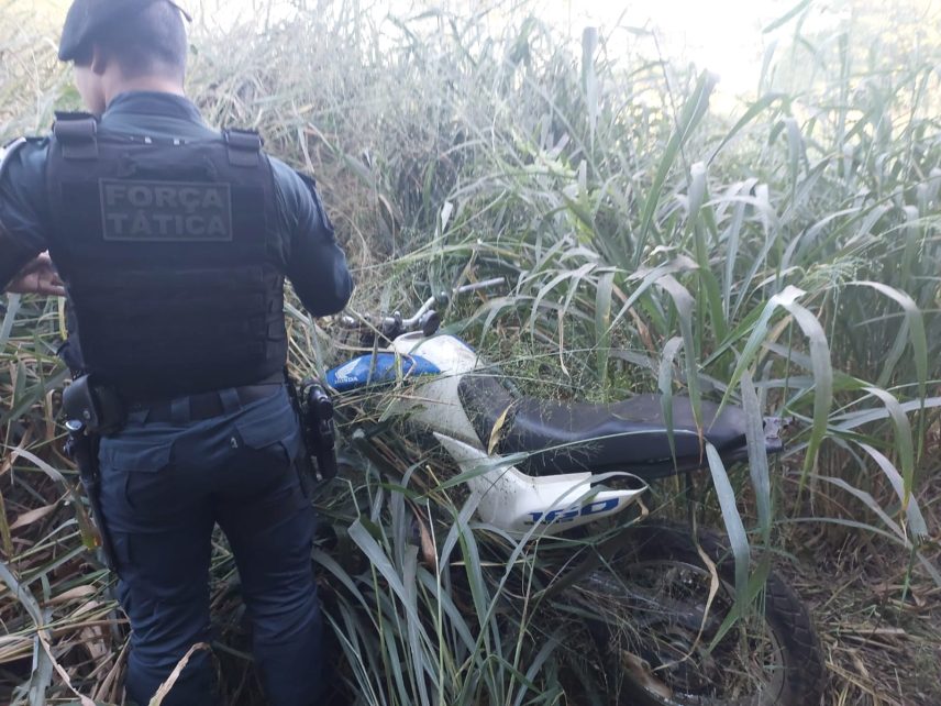 Nesta quarta-feira, às 17h, uma guarnição da Força Tática do 2º Batalhão durante patrulhamento ostensivo na região denominada Cinturão Verde vislumbrou partes de um veículo dissimulado em meio a vegetação na mata. Ao proceder a checagem do veículo Honda/NXR 160 Bros, de cor azul, onde em consulta nos sistemas policiais constataram através da numeração de identificação veicular (chassis) ser produto de roubo ocorrido no dia 20/05/2023, no estado de São Paulo, fato este relatado no B.O 546/2023.
