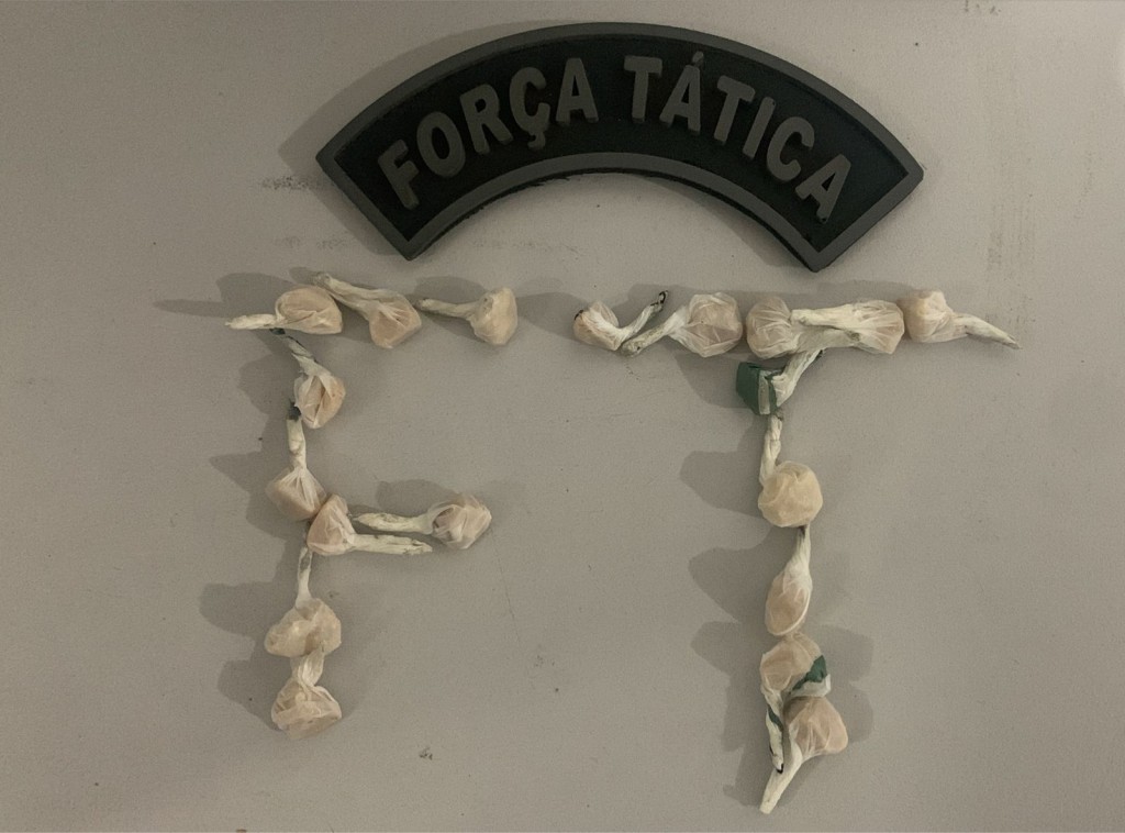Neste domingo, por volta das 1h15, uma guarnição da Força Tática do 2º BPM durante patrulhamento na avenida Clodoaldo Garcia se deparou com a motocicleta em que os 2 ocupantes, demonstraram suspeição ao perceber a aproximação policial, onde o condutor acelerou o veículo repentinamente e arremessou ao solo 1 invólucro branco, sendo de imediato realizado a abordagem policial.
