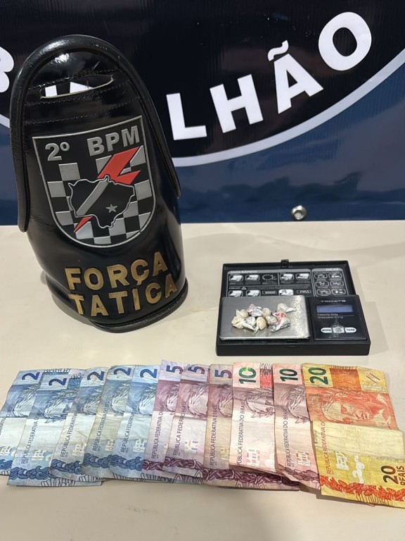 Nesta segunda-feira, por volta das 17h, uma guarnição da Força Tática do 2º BPM durante rondas ostensivas e preventivas no bairro Santa Luzia, quando na rua Quixeramobim, visualizou alguns indivíduos que ao perceberem a aproximação policial adentraram um estabelecimento comercial e se desfizeram de uma “pochete” que traziam consigo. De imediato foi procedido a abordagem policial e localizado escondido em uma lixeira a “pochete” que continha: 10 porções de crack (totalizando 2,37 gramas), além de certa quantia em dinheiro.