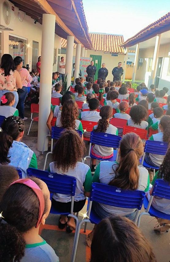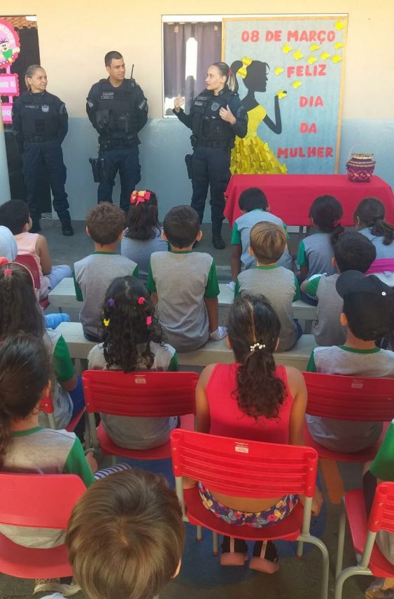 Durante a conversa, os alunos se demostraram interessados em conhecer os equipamentos que as policiais portavam, e as elas tiveram a oportunidade de mostrar os equipamentos e esclarecer que os policiais estão preparados para proteger a sociedade e que são amigos das pessoas de bem.