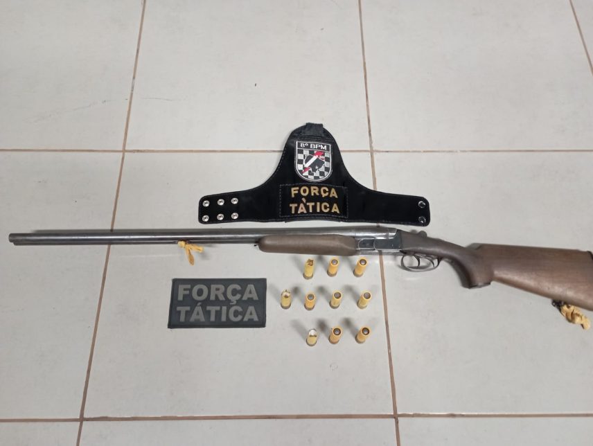 Diante dos fatos, a arma de fogo espingarda calibre 20, com os 10 cartuchos intactos foram apreendidos e encaminhados juntamente com o autor para a Delegacia de Polícia Civil de Ivinhema para as providências legais.