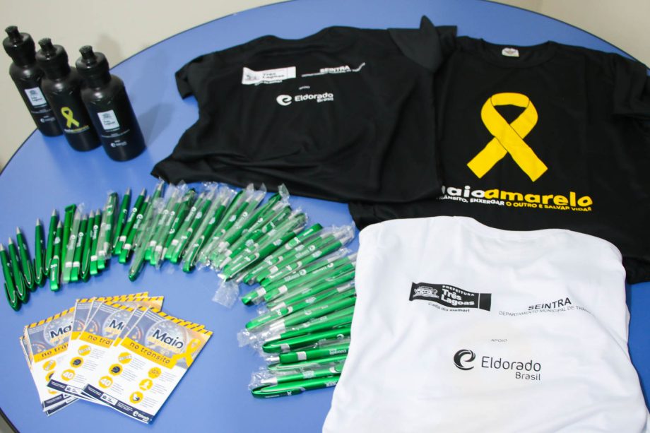 Os preparativos já começaram para o Maio Amarelo, movimento do Departamento de Trânsito, com apoio da empresa Eldorado. Na tarde desta quarta-feira, 29 de abril, a empresa realizou a entrega das camisetas e materiais necessários para a campanha que está prevista para acontecer já nos próximos dias.