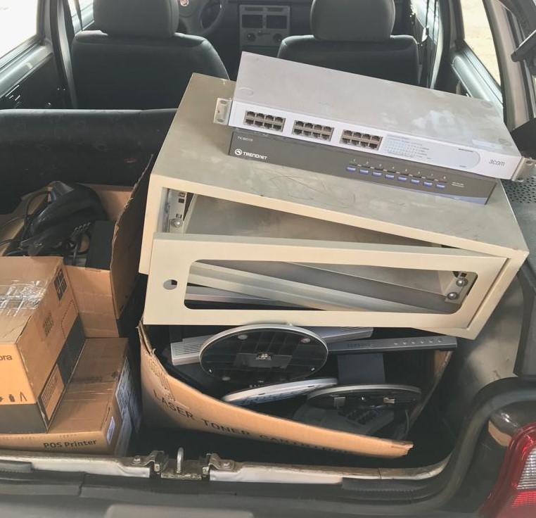 Pilhas, DVD, fax, som, controle remotos, videogames, aquecedores, ar condicionado, bateria de celular, cabos, caixas de som, carregadores, cd room, celular, centrais telefônicas, chapinhas, computadores, placas mãe, placas de computador, ferro de passar, conectores, copiadoras, CPU, disco rígido/HD, estabilizadores, fios, fontes, impressoras, máquinas fotográficas, memórias, modem, monitor CBT, monitor LCD, mouse, no breaks, notebooks, pen drive, máquina de lavar e televisor (tubo).